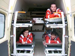 Infusionen, Sauerstoffgeräte, Verbandstoffe usw. an die Einsatzstelle